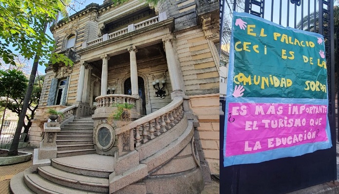 «El Palacio Ceci es patrimonio histórico, cultural y lingüístico de las personas sordas. Pedimos que se respete la identidad y la historia del edificio y que siga perteneciendo a la comunidad sorda para poner en práctica los proyectos pedagógicos que quedaron truncos», dijo Virginia, docente de la escuela, durante reunión en la Legislatura de esta semana.