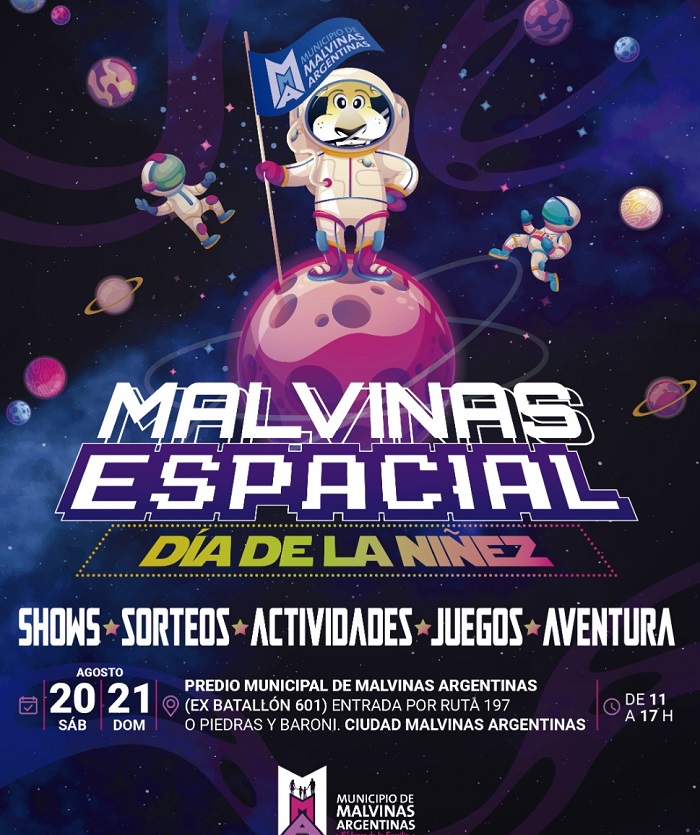 El municipio de Malvinas Argentinas prepara una gran celebración para el día de la niñez. Este año, la temática será “Malvinas Espacial”. Durante el fin de semana del niño, sábado 20 y domingo 21 de agosto, de 11 a 17 horas, el encuentro de la familia será en el predio municipal de Malvinas Argentinas, el ex Batallón 601.