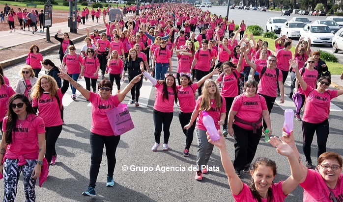 Caminaron juntas vestidas de rosa para promover la detección temprana de esa enfermedad que, si bien es la principal causa de muerte oncológica en mujeres.