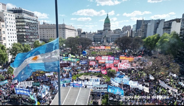 Desde temprano, las inmediaciones del Congreso de la Nación fue el epicentro de la masiva protesta que se replicó en cada rincón del País, donde se unieron al reclamo contra el desfinanciamiento a la educación pública. Bajo el lema «La Universidad no es el problema, es parte de la solución», el acto comenzó a las 17 en la Plaza del Congreso, en la esquina de las avenidas Callao y Rivadavia y en la principales plazas de cada provincia de la Argentina.