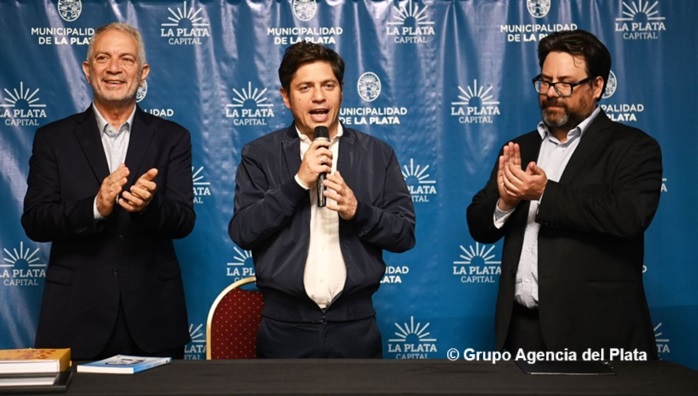 El gobernador de la provincia de Buenos Aires, Axel Kicillof, participó este sábado del acto de firma del convenio de hermanamiento entre las ciudades de La Plata y Montevideo. Fue en el Salón Dorado del Palacio Municipal, junto al intendente local, Julio Alak, y su par de Montevideo, Mauricio Zunino.