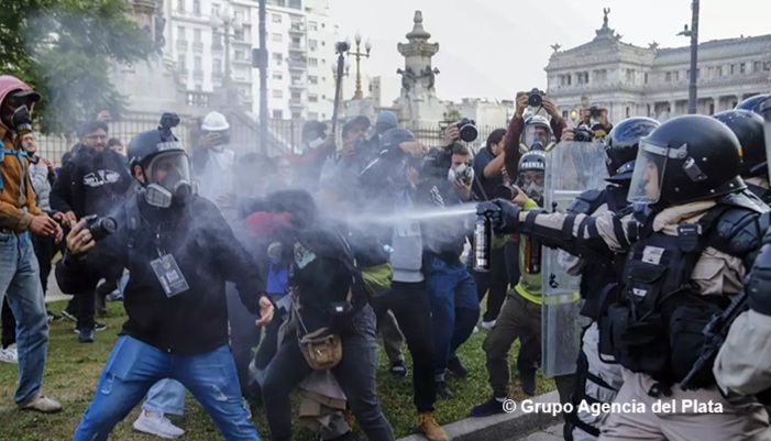En Argentina continúa la violencia institucional, el gobierno de Milei vuelve a reprimir el reclamo de jubilados y a los trabajadores de prensa que registran el testimonio documental de los palazos y gases arrojados por las fuerzas de seguridad que responden al régimen. «La represión sobre la prensa es deliberada y dirigida: no quieren que estemos» afirman desde sindicato de Prensa de Buenos Aires.