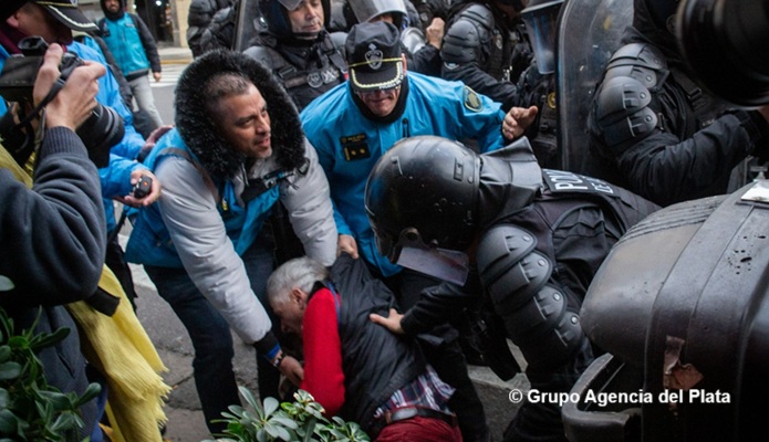 Este miércoles la «Marcha antirepresiva y contra el veto presidencial», fue una movilización pacífica que igualmente fue intervenida por la violencia policial: un jubilado fue arrojado al piso cuando quiso avanzar sobre Avenida de Mayo y golpeado por varios efectivos cuando estaba en el suelo y, además, arrojaron gas pimienta a quienes estaban allí, en ese momento.