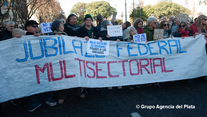 Los jubilados se movilizaron en reclamo de un aumento en los haberes previsionales mínimos y la suba del bono de 70 mil pesos que otorga el Anses, además de la demanda por la restitución de los medicamentos gratuitos del PAMI y contra el veto del presidente Javier Milei a la reforma del año pasado que establecía un incremento para el sector.