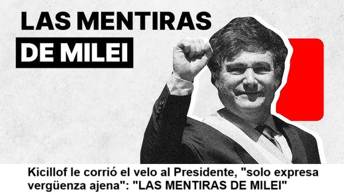 Al tiempo que tildó al Presidente Milei de «criptoestafador«, Kicillof renovó los cuestionamientos a la administración nacional, en un mensaje publicado hace instantes en sus redes sociales titulado: «LAS MENTIRAS DE MILEI».