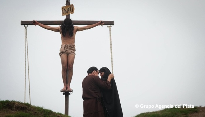 La interpretación del Vía Crucis fue llevada adelante por la parroquia Nuestra Señora de Lima, acompañada por miembros de las distintas comunidades del Decanato de Malvinas Argentinas, recreando las 14 estaciones que representan el camino de Jesús hacia la cruz.