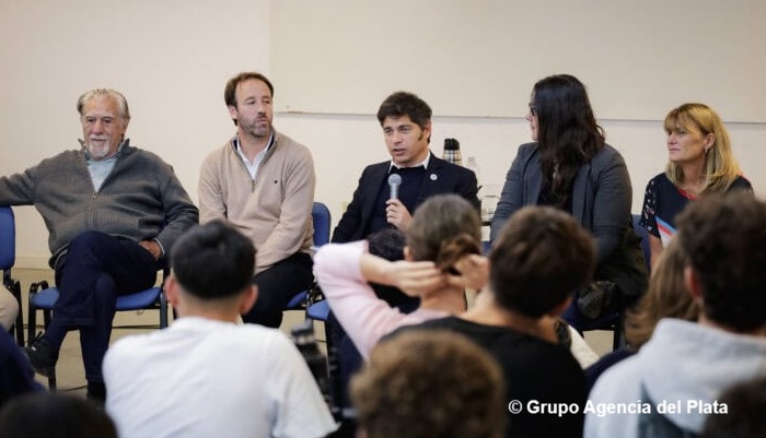 El gobernador de la provincia de Buenos Aires, Axel Kicillof, participó este martes de una charla abierta con alumnos y alumnas de 5º y 6º año del Colegio Nacional de La Plata sobre las políticas económicas aplicadas durante la última dictadura cívico-militar.