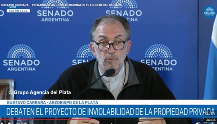 El arzobispo de La Plata y titular de Cáritas Argentina, Gustavo Carrara, en el plenario de las comisiones de Asuntos Constitucionales y de Legislación General de la Senado de la Nación, participó del debate por el acceso a la vivienda impulsado por el gobierno de Milei y advirtió por el impacto en los Barrios Populares.